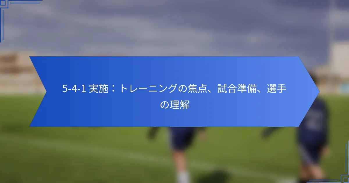 5-4-1フォーメーションは、サッカーにおける戦術的な配置であり、守備の堅実さを重視しつつ、迅速なカウンターアタックを可能にします。トレーニングセッションでは、守備の組織力、中盤のコントロール、フォワードのサポートを強化することに焦点を当て、選手がそれぞれの役割を理解できるようにする必要があります。効果的な試合準備には、相手の強みと弱みを分析し、チームの結束を促進し、さまざまなシナリオでパフォーマンスを最適化するために戦術を適応させることが含まれます。