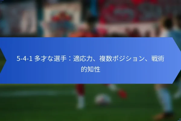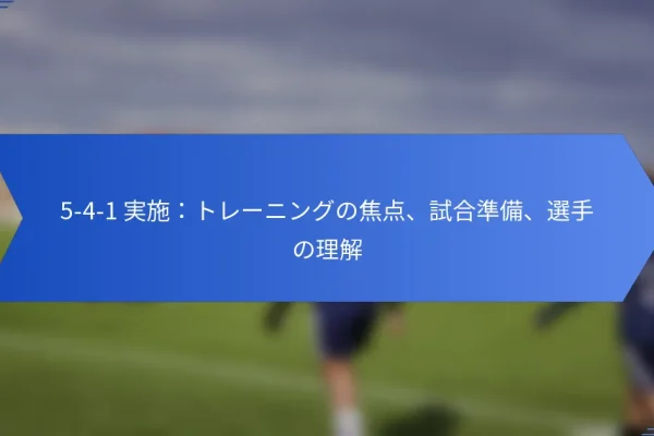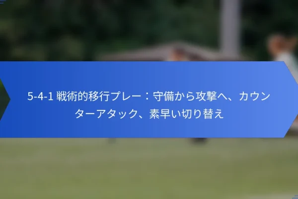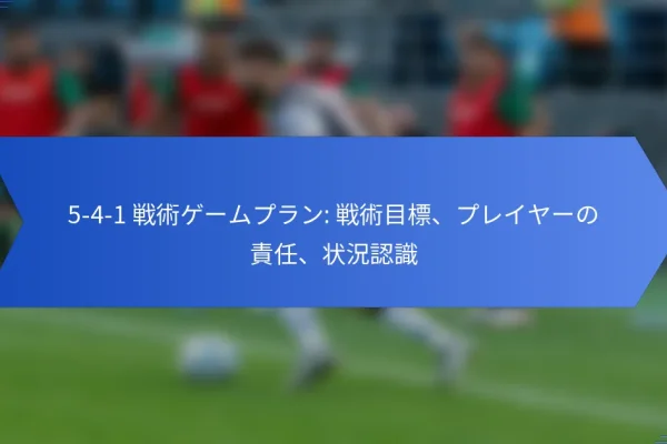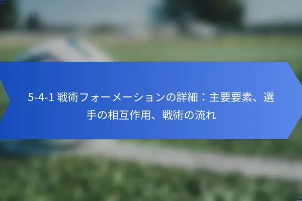 5-4-1の戦術フォーメーションは、5人のディフェンダー、4人のミッドフィルダー、1人のフォワードから構成され、守備の強さを重視しています。このセットアップは、守備の堅固さを優先するだけでなく、迅速なカウンターアタックを可能にし、攻撃的な相手に対して効果的です。選手同士の重要なインタラクションと構造化された戦術的流れは、守備と攻撃のバランスを維持するために不可欠であり、試合を通じてチームワークと適応力を確保します。 5-4-1の戦術フォーメーションの主要な要素は何ですか? 5-4-1の戦術フォーメーションは、5人のディフェンダー、4人のミッドフィルダー、1人のフォワードによる強力な守備構成が特徴です。この構造は、守備の堅固さを強調しつつ、迅速なトランジションとカウンターアタックを可能にします。特に、相手のプレッシャーを吸収し、相手が残したスペースを利用するのに効果的です。 5-4-1フォーメーションにおける選手の役割と責任 5-4-1フォーメーションでは、各選手の役割がバランスと効果を維持するために重要です。5人のディフェンダーは堅固なバックラインを提供し、センターバックはマークとインターセプトに集中し、ウィングバックは守備と攻撃の両方をサポートします。 ゴールキーパー:守備を組織し、後方からプレーを開始します。 ディフェンダー:センターバックは攻撃をブロックすることに集中し、ウィングバックは守備と攻撃の両方で幅を提供します。 ミッドフィルダー:2人のセンターミッドフィルダーはテンポと配球をコントロールし、ウィングミッドフィルダーは守備を助けるために戻ります。 フォワード:ディフェンダーを孤立させ、得点機会を創出し、相手の守備にプレッシャーをかけます。 5-4-1フォーメーションの構造とレイアウト 5-4-1フォーメーションのレイアウトは、通常、守備の組織を優先するコンパクトな形状を特徴としています。5人のディフェンダーは、ボールの位置に応じてシフトできるラインを形成し、ミッドフィルダーは守備を保護するためのバリアを作ります。 ポジション 選手数 ゴールキーパー 1 ディフェンダー 5 ミッドフィルダー 4 フォワード 1 5-4-1フォーメーションの強み 5-4-1フォーメーションの主な強みは、その守備の堅固さにあります。5人のディフェンダーによって、相手の攻撃に対する強力なバリアを提供し、チームが侵入するのを難しくします。このセットアップは、特に強力な相手に対して効果的で、プレッシャーを吸収し、形を維持することを可能にします。 さらに、このフォーメーションは迅速なカウンターアタックを促進します。単独のフォワードは、相手が残したスペースを利用でき、ミッドフィルダーは選択肢を提供し、重要なエリアでのオーバーロードを創出します。この戦術的柔軟性は、相手を驚かせることができます。 5-4-1フォーメーションの弱み その強みにもかかわらず、5-4-1フォーメーションはボールを支配するチームに対して脆弱になる可能性があります。フォワードが1人しかいないため、攻撃の選択肢が限られ、カウンターアタックに依存することになります。これにより、相手からの持続的なプレッシャーが生じることがあります。 さらに、ミッドフィルダーが単独のフォワードを効果的にサポートしない場合、チームは攻撃の勢いを維持するのが難しくなることがあります。これにより、フォワードが孤立し、守備のプレーを得点機会に変えるのが難しくなります。 5-4-1フォーメーションの視覚的補助と図 図などの視覚的補助は、5-4-1フォーメーションの構造や選手のインタラクションを理解するのに役立ちます。図は通常、フィールド上の選手の位置を示し、フォーメーションのコンパクトさや、異なるプレーのフェーズにおける各選手の役割を強調します。 コーチは、戦術的な調整やセットプレーの組織を説明するために、これらの視覚ツールを使用し、選手がさまざまなシナリオでの責任を理解できるようにします。このような補助をトレーニングに取り入れることで、チームの一体感と戦術的な意識を向上させることができます。 5-4-1フォーメーション内での選手のインタラクションはどのように行われますか? 5-4-1フォーメーションでは、選手のインタラクションが守備の堅固さを維持しつつ、効果的なトランジションや攻撃プレーを可能にするために重要です。各選手のポジショニングと責任は、守備と攻撃の両方のフェーズをサポートするように設計されており、チームワークの一体感を確保します。 守備フェーズにおける選手のポジショニング 守備フェーズでは、5-4-1フォーメーションはコンパクトな構造を強調し、5人のディフェンダーが堅固なバックラインを形成します。4人のミッドフィルダーは相手にプレッシャーをかけ、パスコースをカバーすることで守備をサポートし、単独のストライカーは必要に応じて守備を助けるために戻ります。 このポジショニングによ