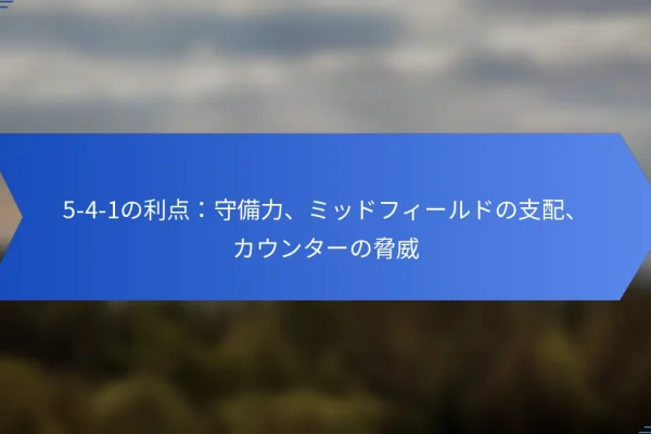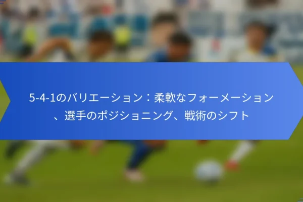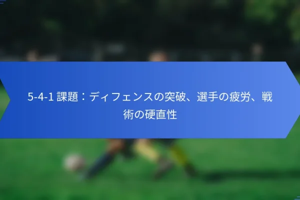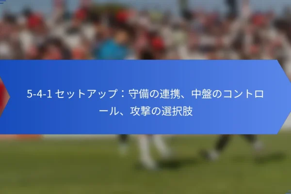 5-4-1フォーメーションは、サッカーにおける戦術的な配置であり、守備の強さを優先しつつ、迅速なカウンターアタックの機会を提供します。このフォーメーション内での試合中の調整は非常に重要であり、チームが試合の状況、相手の戦略、選手の役割に動的に対応できるようにし、最終的には全体的なパフォーマンスを向上させ、相手の弱点を突くことができます。 5-4-1フォーメーションの主要な要素は何ですか? 5-4-1フォーメーションは、守備の堅実さを強調しつつ、カウンターアタックの機会を可能にする戦術的な配置です。5人のディフェンダー、4人のミッドフィルダー、1人のフォワードで構成されており、強力な守備の基盤を作りつつ、攻撃への迅速な移行の可能性を持っています。 5-4-1フォーメーションの構造の定義 5-4-1フォーメーションは、フィールド上の選手の配置によって特徴づけられます。5人のディフェンダーは通常、3人のセンターバックと2人のウイングバックで構成され、守備と攻撃の両方をサポートします。4人のミッドフィルダーはしばしばコンパクトなラインを形成し、守備を支え、フォワードへの移行を促進します。 この構造により、チームは堅固な守備の形を維持でき、相手が突破するのが難しくなります。孤立したストライカーはしばしば孤立しますが、カウンターアタックにおいて重要な選手となり、ミッドフィルダーやウイングバックからの迅速なサポートに依存します。 5-4-1フォーメーションにおける選手の役割 ゴールキーパー: ショットストッピングと守備の組織を担当します。 センターバック: 相手のフォワードをマークし、危険なエリアからボールをクリアすることに集中します。 ウイングバック: 攻撃に幅を提供し、守備をサポートするために戻ります。 センターミッドフィルダー: ミッドフィールドをコントロールし、守備と攻撃をつなぎ、ボールを保持します。 フォワード: 主な攻撃の脅威であり、チャンスを決めたり、プレーを保持したりする役割を担います。 5-4-1で用いられる一般的な戦略 5-4-1フォーメーションを使用するチームは、しばしば守備的なマインドセットを採用し、組織と規律を優先します。彼らは相手からのプレッシャーを吸収し、カウンターアタック中に空いたスペースを利用することを目指します。迅速な移行が重要であり、ミッドフィルダーが前に出て孤立したストライカーをサポートします。 もう一つの一般的な戦略は、ウイングバックを効果的に利用し、彼らがミッドフィルダーとオーバーラップして幅を作ることを可能にすることです。これにより、相手の守備を引き伸ばし、中央の選手が利用できるギャップを開くことができます。 5-4-1フォーメーションの利点 5-4-1フォーメーションの主な利点は、その守備力であり、相手が侵入するのが難しくなります。この配置は、ウイングプレーに依存するチームに対して特に効果的であり、ウイングバックがフランクでの脅威を無効化できます。 さらに、このフォーメーションは、守備から攻撃への移行に柔軟性を提供します。コンパクトなミッドフィールドは迅速にフォワードをサポートし、カウンターアタックの機会を生み出します。チームはまた、ウイングバックをピッチの高い位置に押し上げることで、より攻撃的なフォーメーションに簡単にシフトできます。 5-4-1フォーメーションの欠点 その強みにもかかわらず、5-4-1フォーメーションは、孤立したフォワードがいる場合、攻撃の選択肢が不足する可能性があります。これにより、よく組織された守備を崩すのが難しくなり、持続的な攻撃圧力ではなくカウンターアタックに依存することになります。 さらに、このフォーメーションはウイングバックに高いフィットネスレベルを要求する場合があり、守備と攻撃の両方で大きな距離をカバーする必要があります。彼らがこのパフォーマンスレベルを維持できない場合、チームはフランクで脆弱になる可能性があります。 5-4-1フォーメーションでの試合中の調整はどのように行われるか? 5-4-1フォーメーションでの試合中の調整は、試合のダイナミクスに基づいてチームのパフォーマンスを向上させる戦術的な変更を含みます。これらの調整には、選手のポジションをシフトすること、守備および攻撃戦略を修正すること、相手のフォーメーションに対応すること、効果的に交代を利用することが含まれます。 試合のダイナミクスに基づく選手のポジションのシフト 試合の流れが変わるとき、選手のポジションをシフトすることが重要です。たとえば、相手チームがボールを支配している場合、ミッドフィルダーをより守備的な役割に再配置することが、バックラインを強化するのに有益です。逆に、チームが効果的にプレスをかけている場合、ディフェンダーを前に押し出すことで追加の攻撃オプションを作ることができます。 5-4-1におけるウイングバックの役割を考慮すると、彼らはピッチ